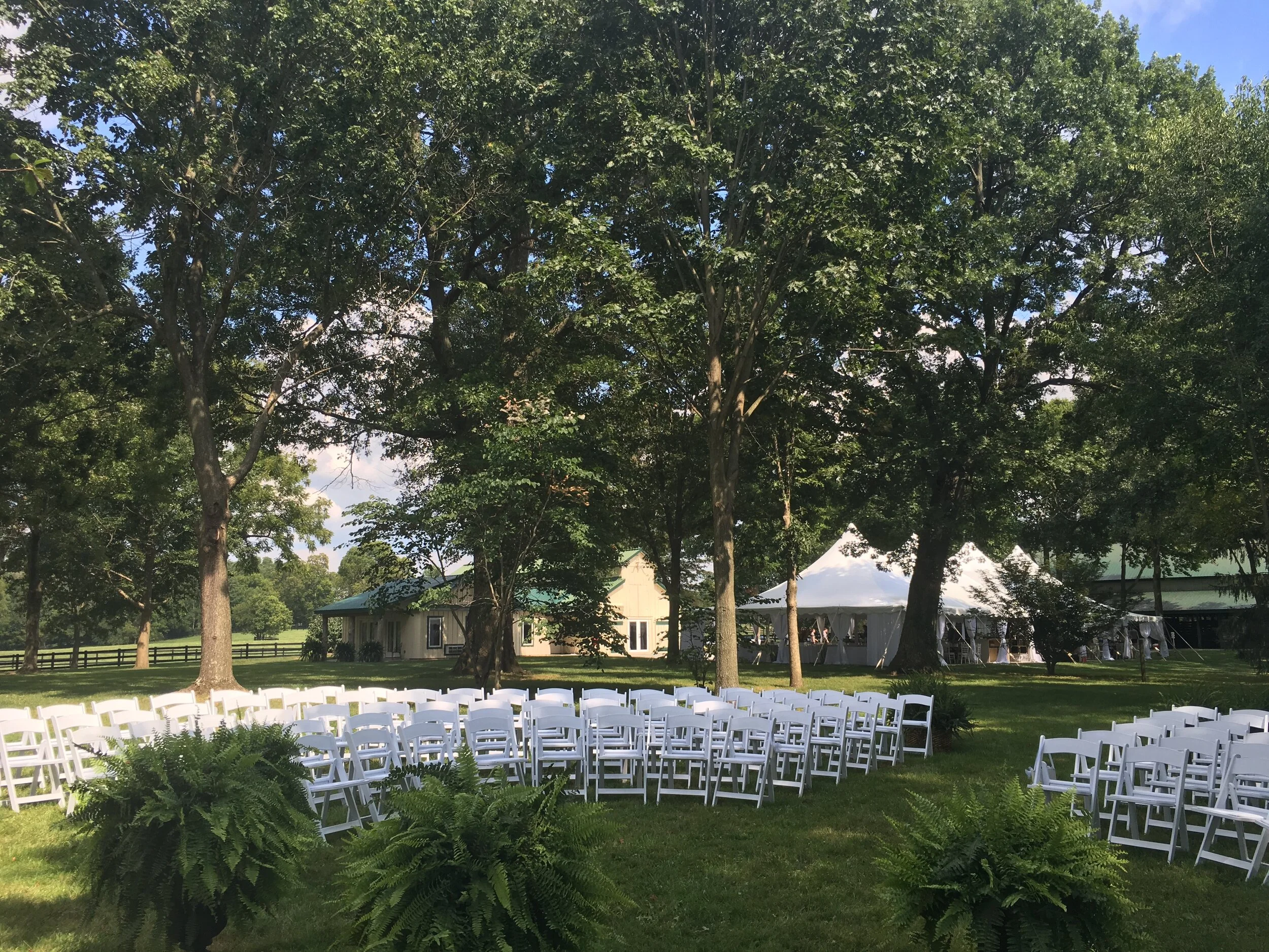 One element of your wedding that has always been important to us, is that you have as much choice as possible when planning and executing your wedding. This includes choosing your ideal outdoor ceremony site within the venue. Couples have a number of different sun shaded options to choose from with the rolling hills of Kentucky and views of the farm as a beautiful backdrop.